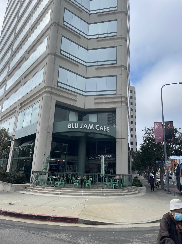 Ah, the battle of the sexes! What happens on a foggy, post spring-ahead morning after you, your spouse to be, and your mercurial toddler drop your mother off at the airport and want to go eat for breakfast? When one of you craves greasy spoon and the other the West Coast solace of a “nice cafe?” Well, nine times out of ten, the woman wins. That’s how I found myself at Blu Jam Cafe on Wilshire and McClellen.