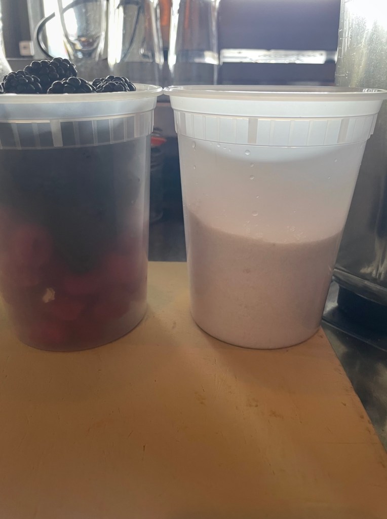A lot of these guys out here make their berry syrups by cooking them in a pot or putting simple syrup and berries in a vacuum sealed bag and sous viding the whole thing at yada yada temp for yada yada amount of hours. Sorry, no time for that shit. Plus, I’ve got to say that when any type of fruit is cooked it tends to lose its flavor. Doing your own jams, jellies, whatever at home, ok, I get it. You and grandma want to jar up the early summer harvest for PB and Js down the road.