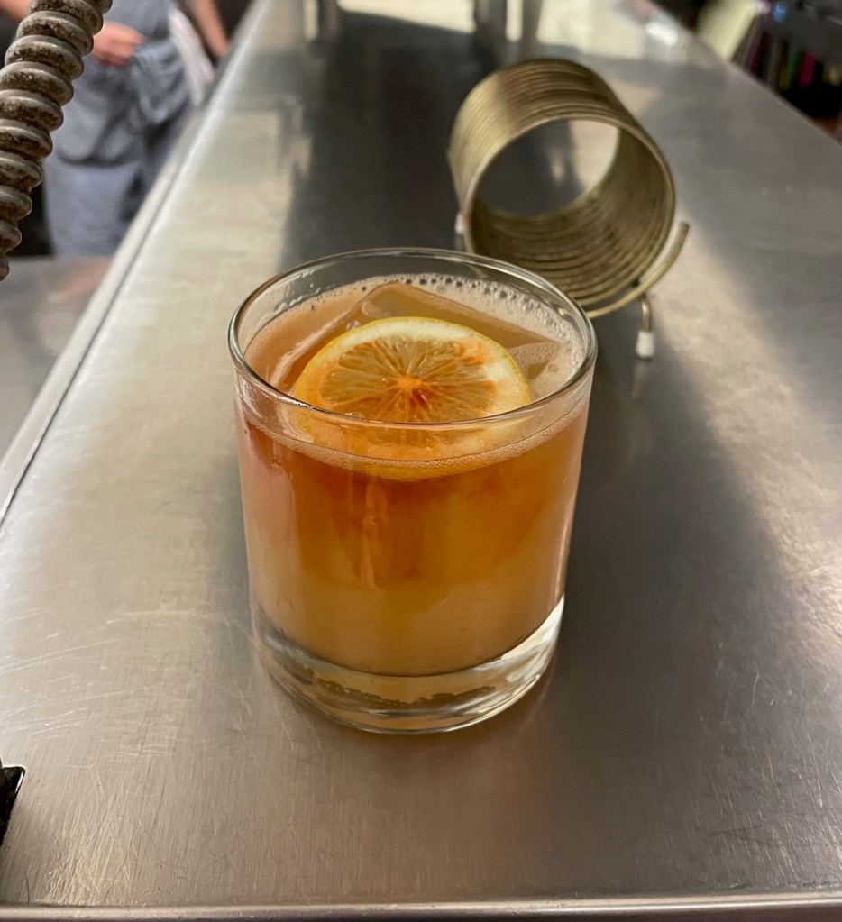 Chef Keith described this one as an old man’s drink that went on vacation. It does have the underlying quality of something pre bottled you’d sneak into the back of a movie theater. Maybe annoy some old folks after being too hammered and get kicked out. Fresh lemon juice gives it a good zing.