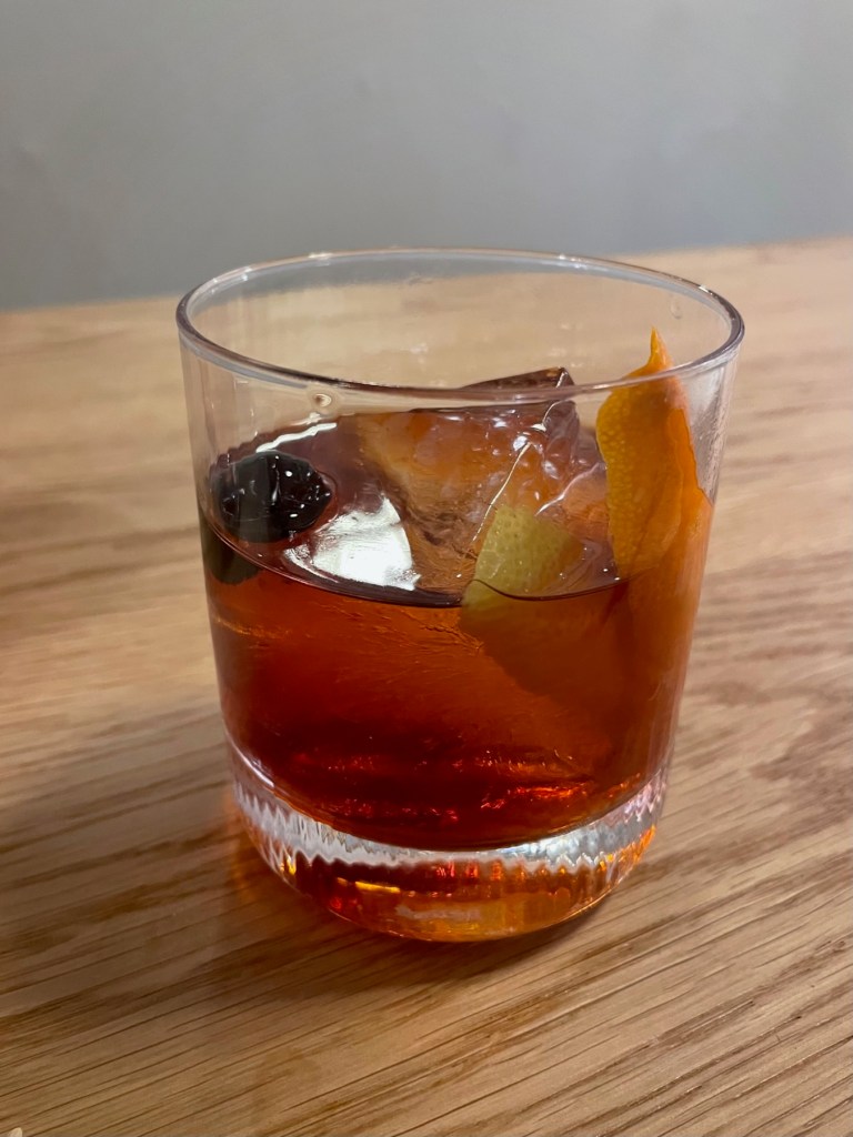 Garnished with a Luxardo cherry, orange and lemon peel because why the hell not? And yes, Grand Dad Bonded because I didn’t have a strong rye kicking around. I had some Michter’s, which veers toward the low ABV side but flavorful and soft.