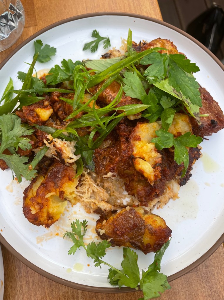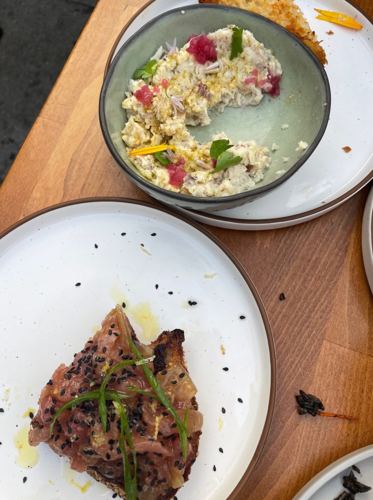 The place is small. You can eat inside at the window if you choose but most of the seating is outside in the street on the typical ramshackle pandemic patio. Not my fave. I personally hate sitting at tables and prefer the height and comfortability of bartops if I have a say. For some reason sitting down at a restaurant table gives me anxiety but it was unavoidable in this setting. I think it’s partially because I can see and feel too much going on. For one, our table was wobbly when we sat down, which is one of my many pet peeves. Yes, the rumors are true, bartops do not wobble. We also had to sit down mere inches from two girls who both spoke in that weird Kardashian drone that I’ve noticed is becoming more and more prevalent in young women. Another reason to sit at a bar is because, well, cooler, more “with it” people sit at bars and mostly douchebags sit at tables. Anyway…