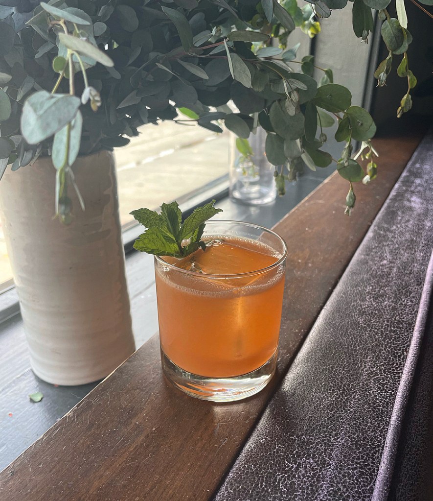 Short shake, strain onto BFR, top with a small one finger pinch of Maldon salt and give it a well slapped mint sprig for aroma.