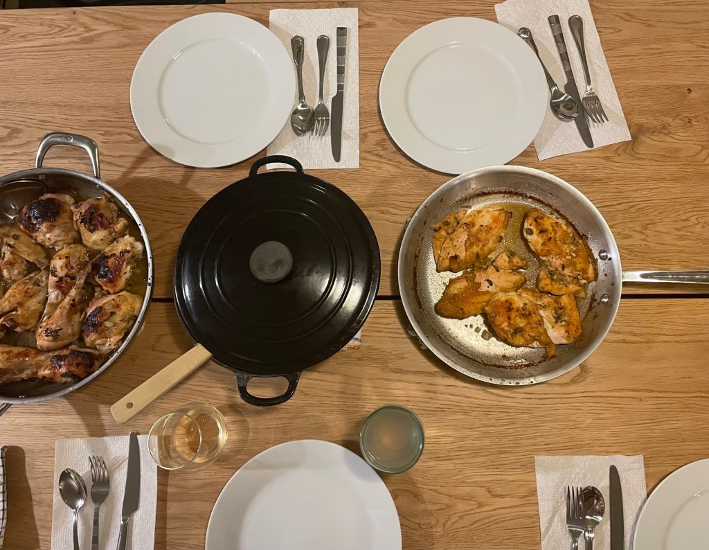 While it’s crisping up I turn the oven off but leave the breasts in there and then reduce the sauce on the stove.